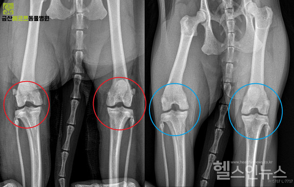 개 슬개골탈구 수술 후 방사선치료를 받고 있습니다.