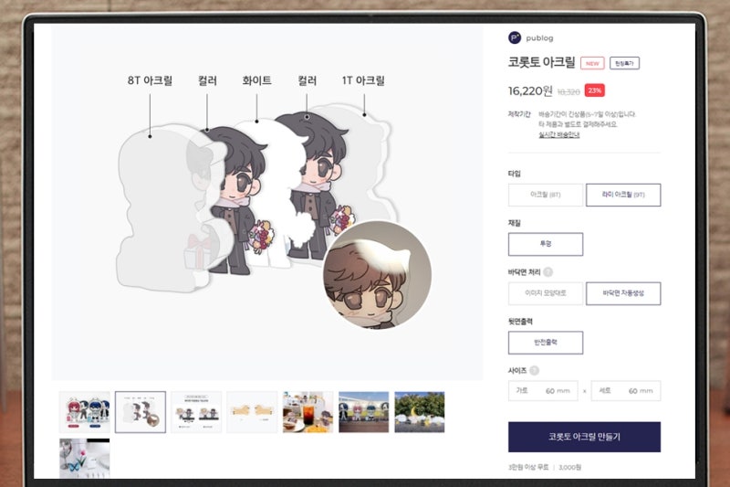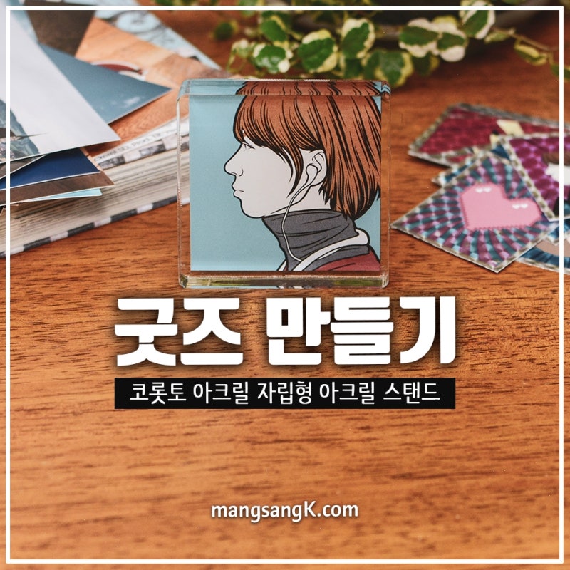 마음에 드는 이미지나 그림으로 굿즈를 만들어 소품으로 활용하고 싶다면 두꺼운 아크릴 스탠드는 어떨까요? 푸블로 코로토 아크릴은 선명한 화질로 제작이 용이합니다. 네이버 프로필을 이용해 굿즈를 만들어 보았습니다.