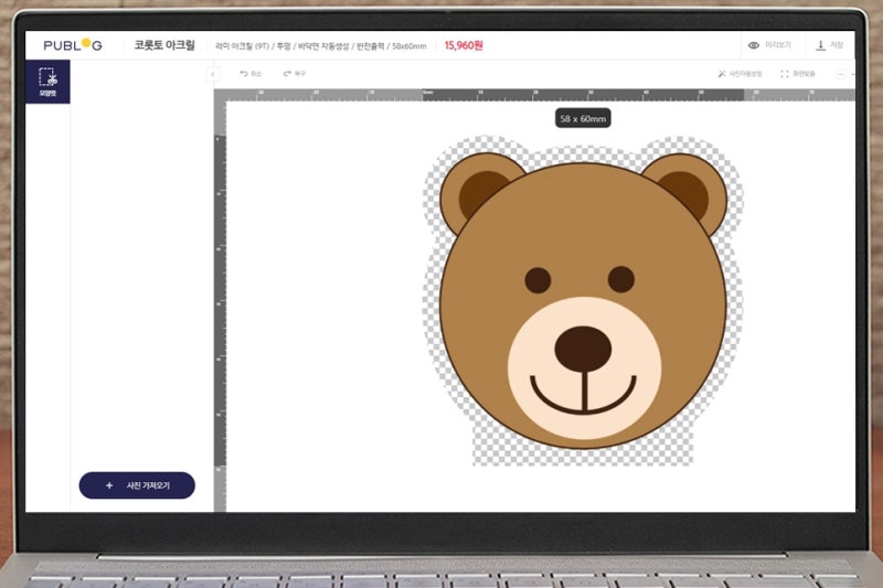제가 사용한 네이버 프로필 이미지에는 배경이 있어서 딱 그 느낌이네요. 배경이 없는 캐릭터 이미지라면 자동으로 모양컷이 생성됩니다. 편집이 완료되면 바로 저장하거나 장바구니에 담을 수 있습니다.