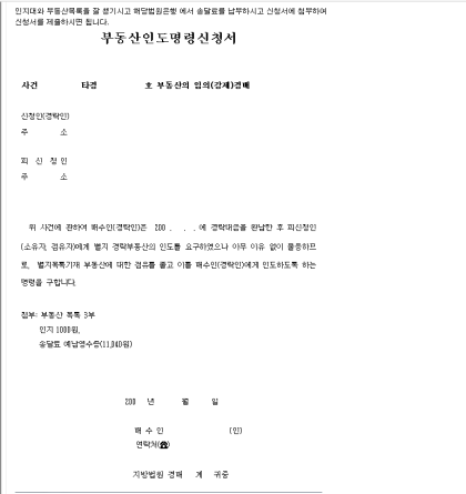 이미 대금을 전액 지불한 경우에는 부동산 배달명령을 통해 부동산 소유자나 점유자로부터 배달을 받을 수 있는데, 이는 소송보다 훨씬 간단한 절차입니다. 부동산 인도명령을 신청하는 관할법원은 집행법원의 전속관할로 합니다. 현재 진행 중이거나 과거에도 진행되었던 경매사건을 집행하는 법원입니다.