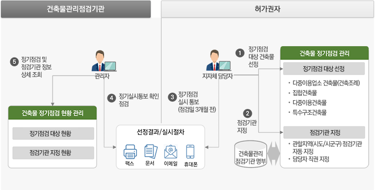 최근 태풍, 지진, 화재, 붕괴 등으로 인해 건축물에 대한 체계적인 유지관리의 필요성이 높아지고 있습니다. 우리나라의 모든 구조를 국가가 관리하기는 어렵지만, 기관이나 법률에 의한 정보의 분산으로 인해 업무의 비효율이 발생하고 있습니다. 이에 국토교통부가 건립을 추진했다. 생활이력관리시스템이 도입되었습니다. 건축물관리법 제13조(정기점검)
