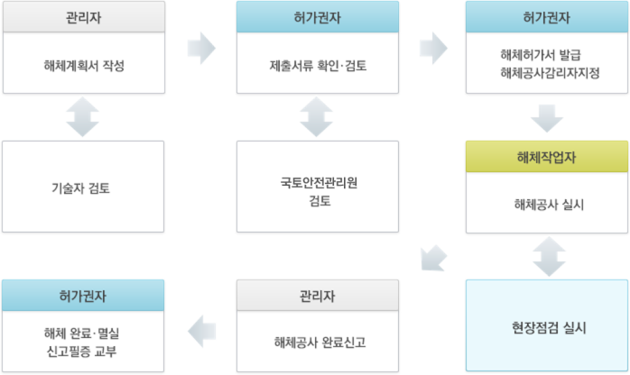 이는 철거에도 적용됩니다. 철거 준비 단계에서는 주변 구조물 점검, 구조 안전성 검토, 철거 방식 선정, 공정 및 시공계획 수립, 신고, 허가 등의 과정을 거쳐야 한다.
