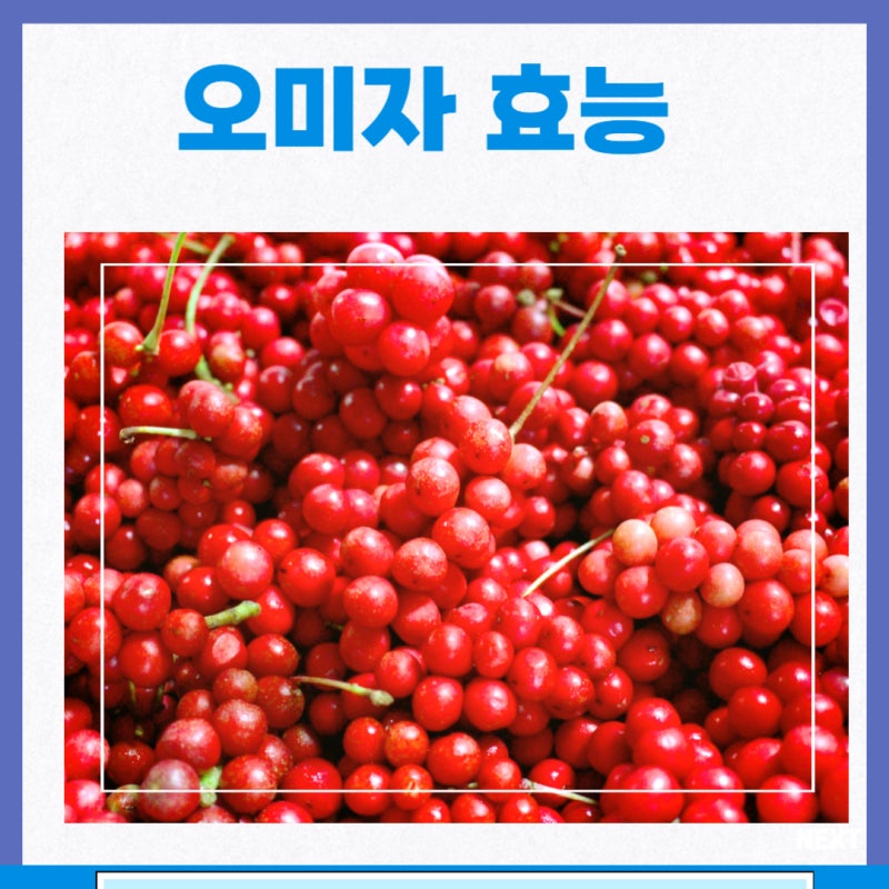 5. 갈증 해소 오미자의 신맛은 갈증 해소에 좋습니다. 평소 입이 건조하다면 오미자차를 마시는 것이 좋다. 혈당을 낮추어주기 때문에 당뇨병을 앓고 있는 분들의 갈증 해소에 도움이 됩니다.6. 면역력을 높이는 항산화제는 우리 몸을 더욱 강하게 만들어줍니다. 각종 바이러스로부터 우리 몸을 지켜주는 면역력 향상에 도움이 됩니다. 또한 천연 항염증제 역할을 하는 효능이 있어 각종 염증으로부터 우리 몸을 보호하는 역할을 합니다. 오미자 부작용