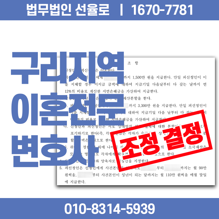 소송은 힘든 싸움입니다. 이미 오랫동안 다툼을 벌여온 상태에서 이혼소송을 진행한다는 것은 부담스럽고 육체적으로 힘든 일이 될 수 있습니다. 그러나 이혼심리 진행이 어렵다고 참석하지 않거나 무시한다면 상황은 필연적으로 본인에게 불리한 방향으로 흘러갈 수밖에 없습니다. 이 과정을 혼자 진행하는 것이 부담스럽다고 느끼신다면 변호사와 함께 전략적으로 대응하시기 바랍니다. 재판이혼 진행 시 답변서 작성 및 제출 중요 재판이혼은 배우자 중 한 사람이 소송을 제기함으로써 시작됩니다. 이때, 혼인 파탄의 사유가 법령에서 정한 항목에 해당하는 경우 재판이 진행되오니 참고하시기 바랍니다. 법원이 원고가 접수한 소장을 검토하고 검토 후 피고에게 통지하면 피고는 정해진 기한 내에 답변서를 작성해야 합니다. 작성하여 제출해야 합니다. 원고의 고소 내용이 너무 황당하거나 이혼에 동의하지 않는 경우에는 답변서를 제출하여야 합니다. 그러면 법원은 원고의 주장 내용에 유리한 판결을 내릴 것입니다. 그러므로 이해하기 어려운 내용이 있거나 이혼이 받아들이기 어려운 경우에도 정확하고 신중하게 답변을 작성하여 제출하셔야 합니다. 재판 이혼 전 조정(변론기일) 본격적인 재판 이혼이 이루어지기 전 먼저 조정절차가 진행됩니다. 조정이혼은 협의이혼과 재판이혼의 성격을 갖는다. 가끔 조정기일, 즉 이혼심리 기일에 참석해야 하는지 의문을 품는 분들이 있는데 참석하는 것이 유리합니다. 번거롭거나 부담스럽다는 이유로 참석을 기피하는 분들도 계시지만, 참석하고 자신의 주장을 확고히 해야 원하는 결과를 쉽게 이끌어 낼 수 있습니다. 참고로, 당사자가 아닌 당사자가 변호사를 선임해도 괜찮다는 점을 명심하시기 바랍니다. 이혼을 신청한 사람이 이혼 심리에 2회 이상 참석하지 않을 경우 소송이 진행되지 않고 중단될 가능성이 높습니다. 또한, 3차 회기까지 출석하지 않을 경우 소송은 기각되므로, 소송 기각을 원하지 않는 한 꼭 참석하셔야 합니다. 이혼심리 당일에는 무엇을 하시나요? 서로의 입장을 공개하는 시간이다. 만약 상대방이 지나친 요구를 하거나 이해하기 어려운 수준으로 말한다면 바로잡아 주고 자신의 입장을 밝혀야 합니다. 재산 분할, 위자료, 자녀 양육권 등에 관한 논의도 있습니다. 또한 조정 과정에서 상대방의 방어 모습을 보고 구체적인 맞춤형 전략을 세울 수 있으므로 성실하게 진행하는 것이 가장 좋습니다. 당사자나 대리인만 참석하는 것이 아니라 남양주 구리시 이혼전문변호사와 당사자들이 참석하는 것이 가장 이상적이다. 원하는 결과를 얻기 위한 이혼심리일정에 대해 더 궁금한 점이 있으시면 언제든지 연락주시기 바랍니다. 그리고 이혼소송을 고민하거나 직면하게 되었을 때에는 최대한 빨리 해당 분야의 노하우가 풍부한 변호사를 찾아 선택하시는 것이 유리합니다. 보다 빠르고 정확하게 원하는 결과를 얻으려면 남양주 구리에 있는 경험이 풍부한 이혼전문변호사와 함께하는 것이 좋습니다. 개인별 다양한 사유에 대한 심층적인 분석과 법적 검토를 통해 해결방안을 제시해 드리고 있으니 이제는 재판 이혼을 너무 두려워하거나 어렵게 생각하지 마세요. ▼ 이혼성공 사례를 확인해보세요 ▼ 경제적으로 좋은 결과로 성공한 이혼사례, 남양주이혼변호사 전화상담변호사 2… blog.naver.com 대표변호사가 의뢰인과 직접 소통합니다. 상담안내*대표변호사가 직접 상담해드립니다. 031-522-4995 모바일에서 클릭하시면 전화로 연결됩니다. 방문상담의 경우 사전 예약을 하시면 상담이 용이합니다. 찾아오시는 길 50m NAVER Corp.자세히 보기 /OpenStreetMap 지도 Datax NAVER Corp. /OpenStreetMap Map Controller Legend부동산 동시군 구시 거리읍 도법률사무소 서상 남양주 중앙법무타워 305호 변호사예약실 경기도 남양주시 다산중앙로82번길 152