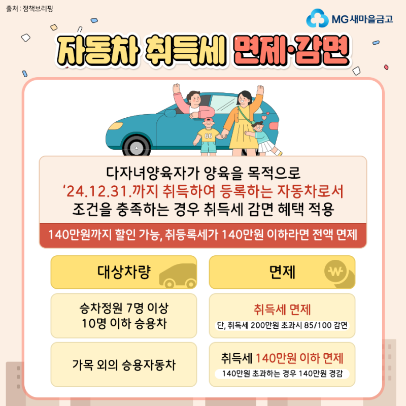 2024년 다자녀 혜택 요약(자동차 등록세 등)
