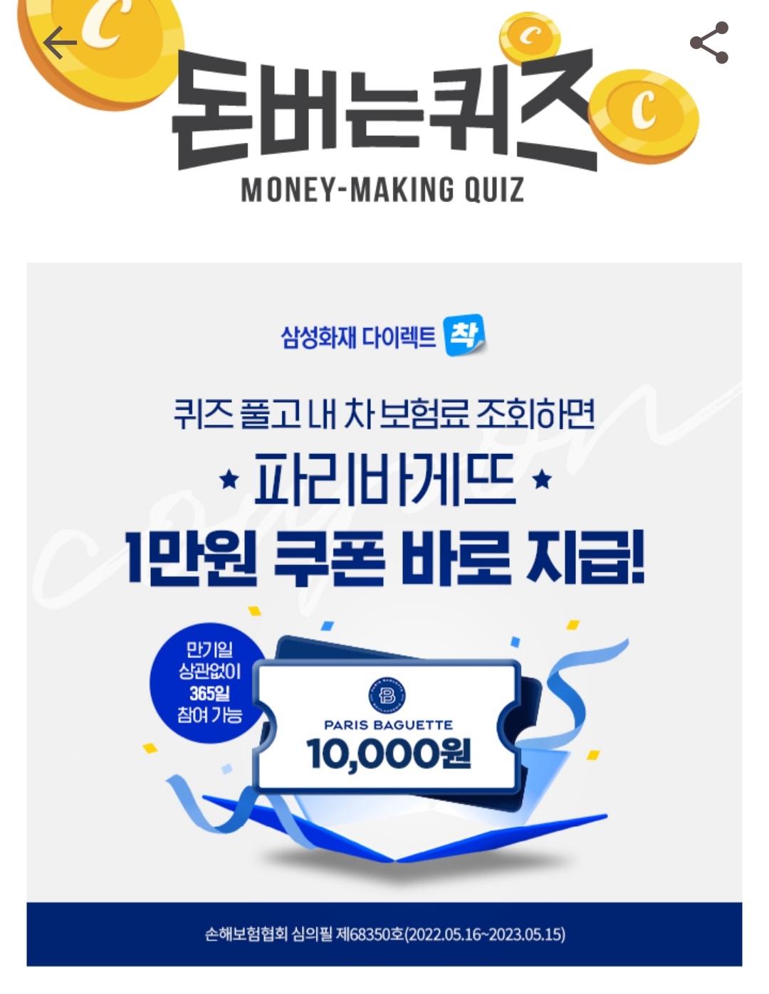 5월 30일 삼성화재 프리미엄 캐시워크/캐쉬닥 돈 버는 퀴즈